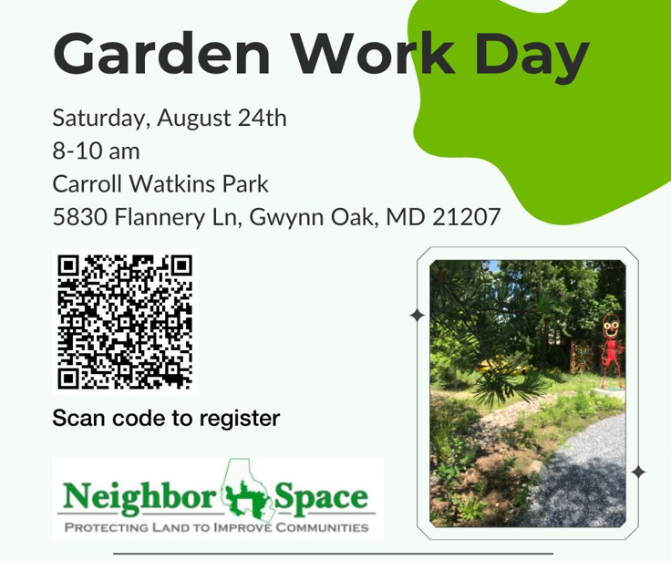 Join NeighborSpace of Baltimore County on Saturday, August 24th from 8-10 am to weed, transplant, and maintain the rain gardens at one of our community pocket parks.