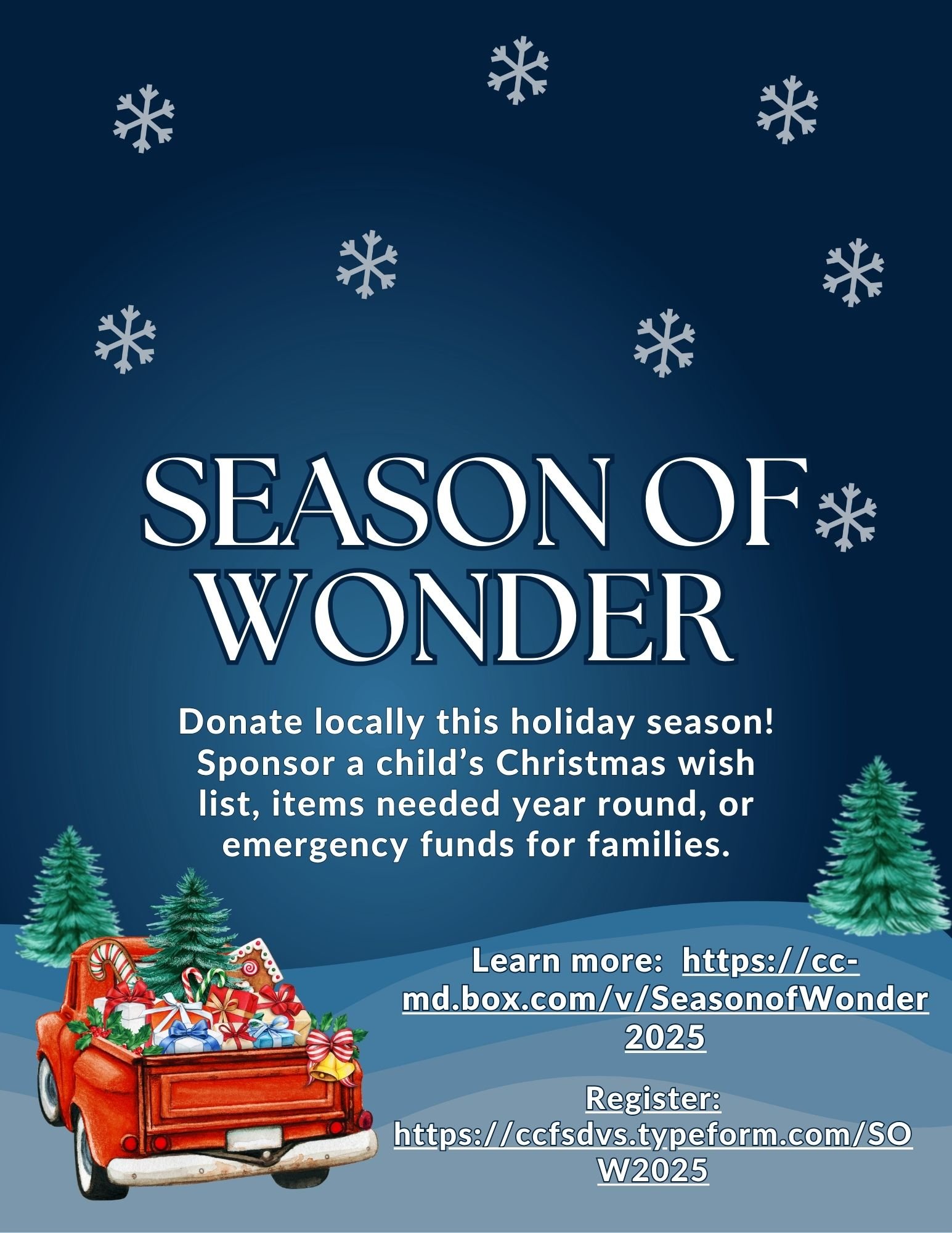 Give Back Locally! Donate gifts to children through Season of Wonder